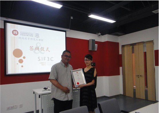 香港時尚買手學院名譽教授,IFB上海課程項目主任 Prof.Tim Xu 為IFB上海6月時尚買手研究生課程班班長戴依町頒發特殊貢獻獎,表彰其擔任班長職務期間為班級做出的貢獻
