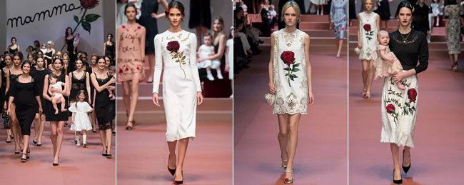 在迎來西西里風土審美疲勞後,Dolce & Gabbana轉向了煥發溫情的親情元素。2015秋冬的T台連娃都出動,為了讚美偉大的母愛,也是拼了!