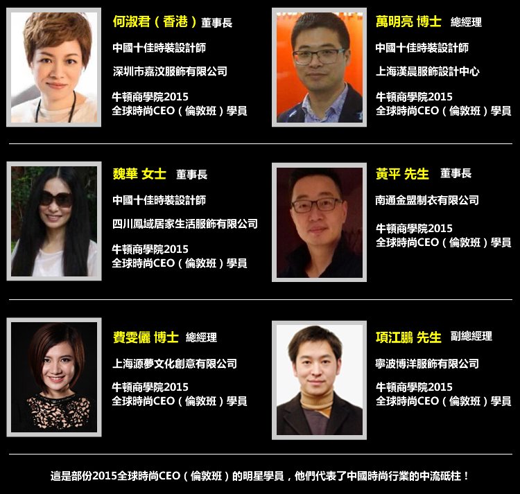 為了順應中國時尚產業發展潮流,快速的與世界時尚產業接軌,由英國倫敦藝術大學中央聖馬丁藝術設計學院、牛頓商學院和香港時尚聯合會共同開辦的全球時尚CEO項目(倫敦班)應運而生,全球時尚CEO課程是一門特殊的高層經理課程,也是目前全球時尚介面向時尚高管最高層次的國際課程。