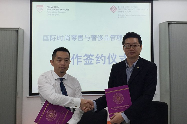 10月29日,牛頓商學院-IFB與香港理工大學深圳研究院戰略合作協定簽署儀式在香港理工大學深圳研究院舉行,該協議旨在開設《國際時尚零售與奢侈品管理》課程專案,牛頓商學院-IFB執行院長吳波博士與香港理工大學深圳研究院首席代表白洪海教授代表雙方簽署了該協定。吳波博士首先介紹了牛頓商學院與香港理工大學達成戰略合作的目的和意義,即通過專案合作方式,為亞洲時尚教育做出貢獻。白教授也指出推動時尚教育的發展,需要牛頓商學院專業教授的支撐,並表示對此次合作雙方表示強烈的支持。