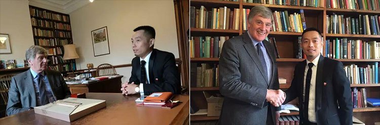 牛津大學執行校長拉爾夫•沃勒博士在校長辦公室與牛頓商學院執行院長吳波博士親切交流