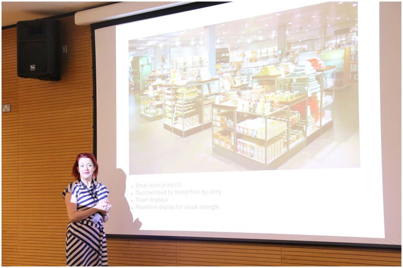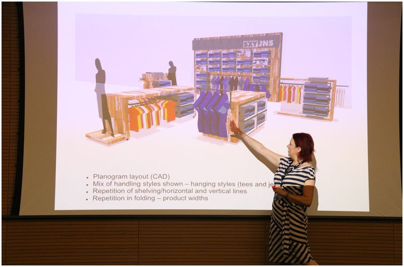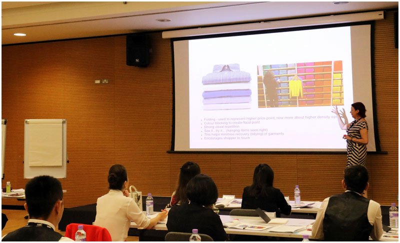 Lesley Taylor教授在這次的課程中主要為學員們講授視覺行銷在零售環境中的重要性,構成和應用,並結合英國時尚零售店室內設計準則和案例展示,讓學員們瞭解在實際行銷中的設計準則以及如何把設計準則應用到不同規模和佈局的店面。