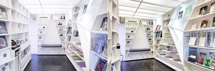 最讓人留連忘返的莫過於 Gallery Room 對面的迷你 Library。原有的木制地板刷上青灰色,白色的陳列櫃呼應著長廊的近未來感。除了藝術、時尚與攝影相關書籍,也能找到許多獨立發行的專輯與黑膠唱片;而經典卻難尋的稀有限量名作,從《MAISON MARTIN MARGIELA: 20: THE EXHIBITION》、1997 年第一版的《MUTILATE – WALTER VAN BEIRENDONCK》,再到上世紀 80 年代日本知名藝術家/攝影師大竹伸朗的《UK 77: DIGGING MY WAY TO LONDON》等等,皆是 LN-CC 獨有的收藏。