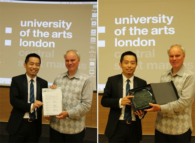 倫敦藝術大學中央聖馬丁藝術與設計學院院長Jeremy Till與牛頓商學院執行院長Dr.Toms Wu為各位學員頒發證書