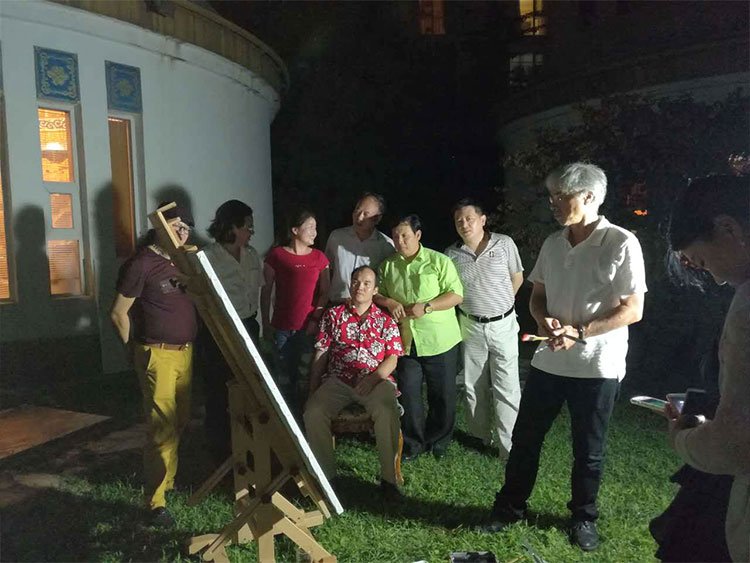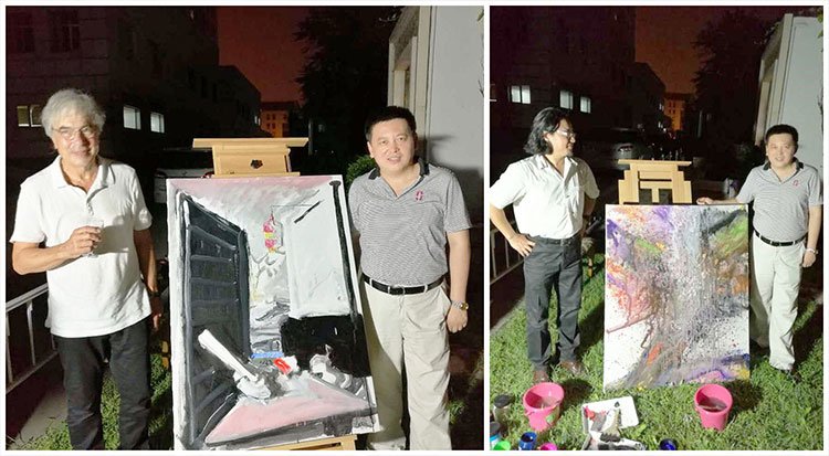 剪裁儀式過後法國美術家協會主席雷米•艾融就中法不同的文化藝術進行了展示及交流並且現場進行了創作。