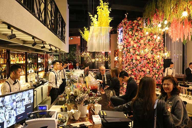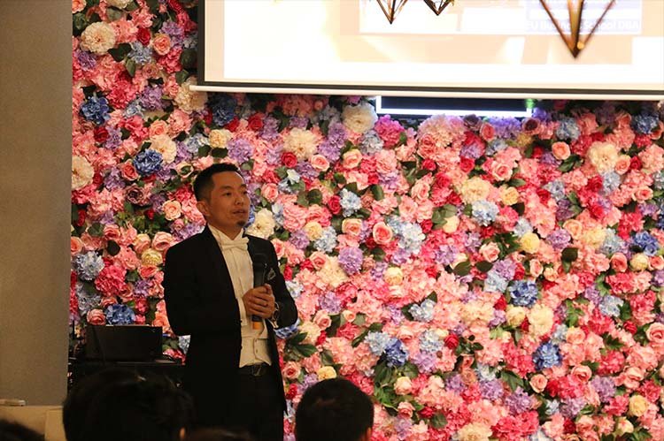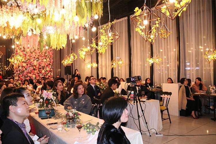 晚上六點,晚會正式開始。牛頓商學院兩岸三地的校友、中法工商管理博士企業家和特邀嘉賓開始紅毯簽到,他們身著各式霓裳,在鮮花簇擁下的時尚酒會現場合影留念。