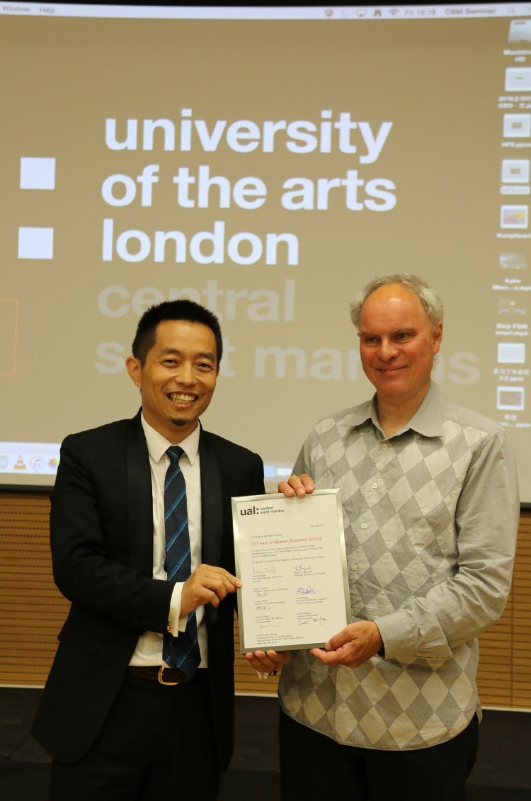 中央聖馬丁藝術與設計學院院長Jeremy Till親自為牛頓商學院成立十三周年頒發祝賀函