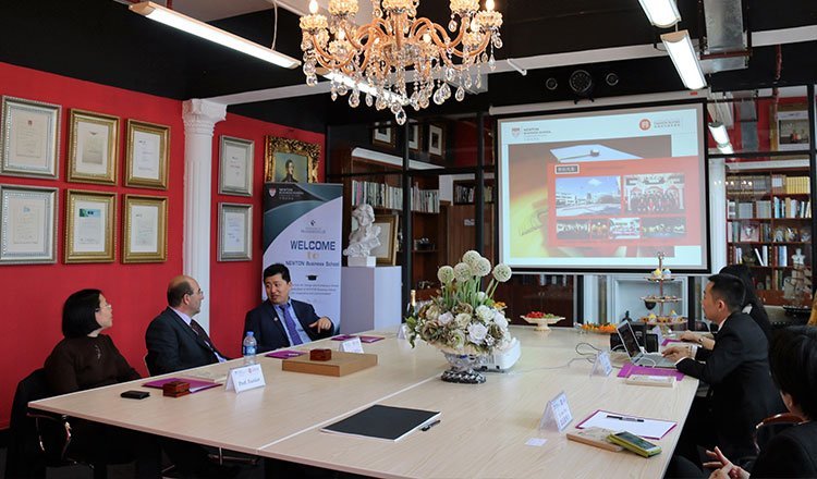 英國哈德斯菲爾德大學藝術設計與建築學院院長一行同牛頓商學院教授們一同商討合作事宜