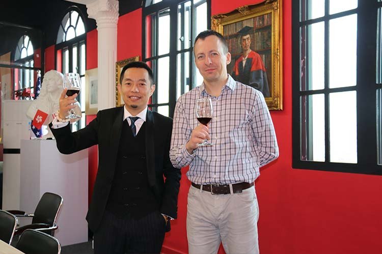 Nick Wright先生與Dr. Toms WU吳波博士共同舉杯預祝兩院2017年於倫敦合作的全球時尚管理項目圓滿成功