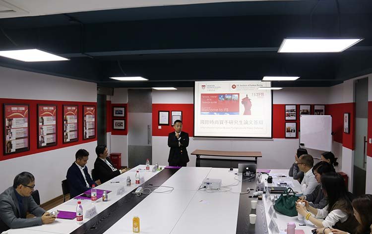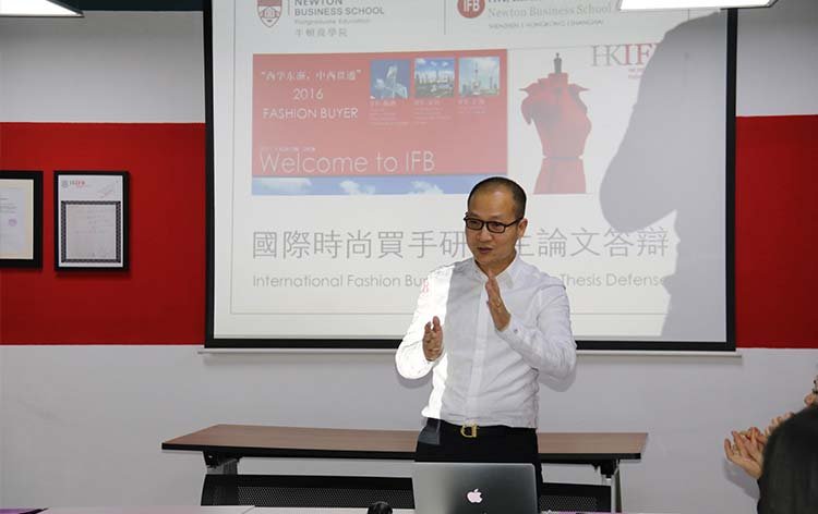 下午1:30開始了緊張有序的答辯環節,答辯總共分為兩組,擔任此次國際買手研究生課程論文答辯的導師有:香港時尚聯合會主席、牛頓商學院執行院長吳波博士,臺灣時尚文化產業聯合會主席、牛頓商學院教授覃冠豪博士,牛頓商學院教授、著名的商品企劃專家張宏教授,世界三大奢侈品集團之一的曆鋒集團高管金軼博士。