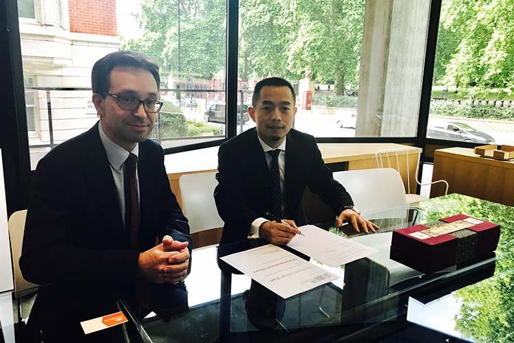 牛頓商學院院長吳波博士與英國皇家藝術學院首席運營官Richard Benson進行簽約儀式