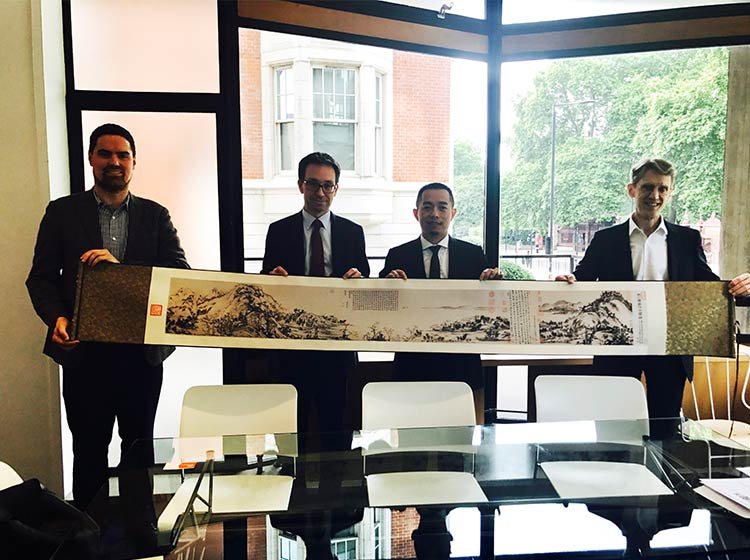 兩院領導展示牛頓商學院送給英國皇家藝術學院的中國名畫“富春山居圖”