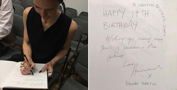 04 - 英國倫敦著名珠寶首飾設計大師 Hannah Martin在英國倫敦為牛頓商學院十四周年慶題詞,祝賀牛頓商學院NEWTON Business School為全球時尚商界培養更多時尚人才。