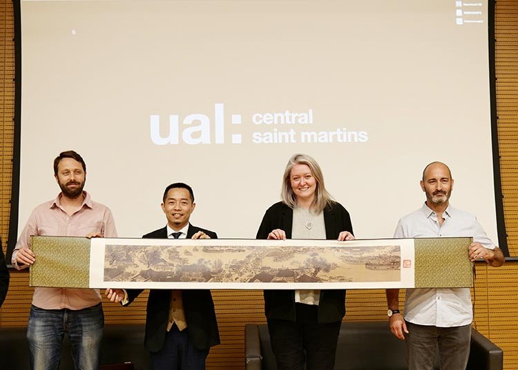 吳波博士代表牛頓商學院送給中央聖馬丁被稱為中國十大傳世名畫的“清明上河圖”絲綢製品