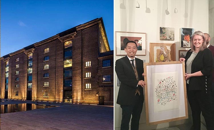 為慶祝兩院合作三周年,吳波博士代表牛頓商學院,特地從中國帶來了極具東方文化特色的絲綢製品,被稱為中國十大傳世名畫的“清明上河圖”送給中央聖馬丁藝術設計學院。 Kelly表示,我代表聖馬丁感謝來自牛頓商學院的禮物,並感歎說:東方文化藝術博大精深,這份極具文化價值的禮物值得永久珍藏。