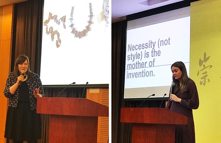 東華大學上海國際時尚創意學院的兩位國際專家分別就“設計與可持續時尚提花創新”為主題展開演講。