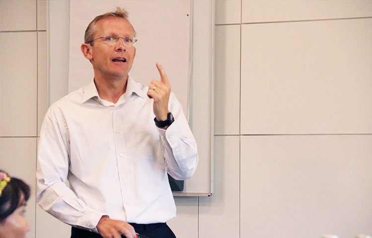 劍橋大學穆勒學院專業服務集團主席Des Woods為英國班的學員們授課