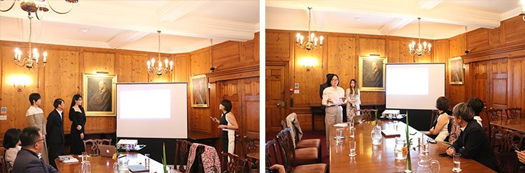 牛頓商學院2018《全球時尚CEO》英國班學員分成兩組在劍橋大學基督學院做課程報告