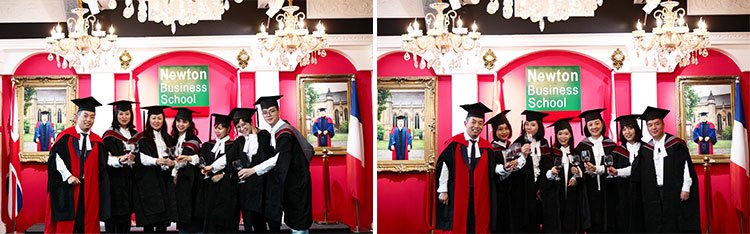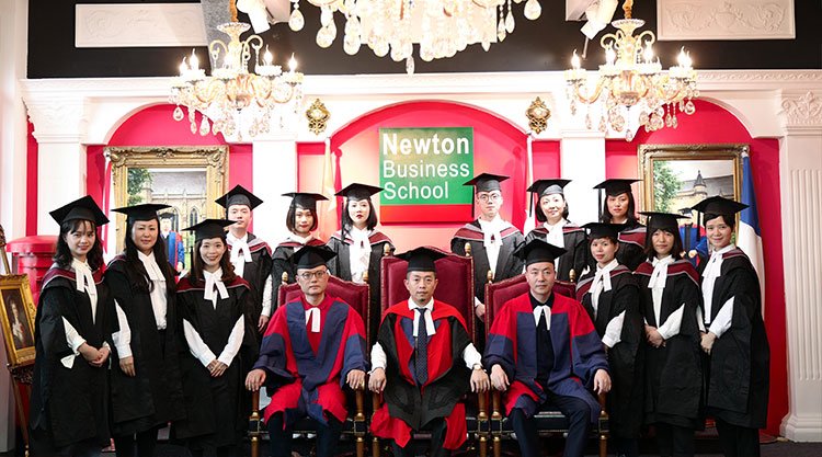 牛頓商學院院長和答辯專家導師們與學員們畢業合影