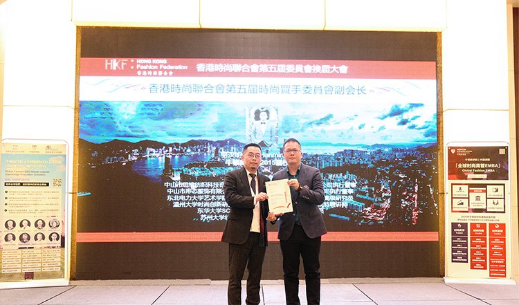 牛頓商學院院長吳波博士與東北電力大學藝術學院副院長宋德風博士為香港時尚聯合會時尚設計委員會各委員頒發受聘證書