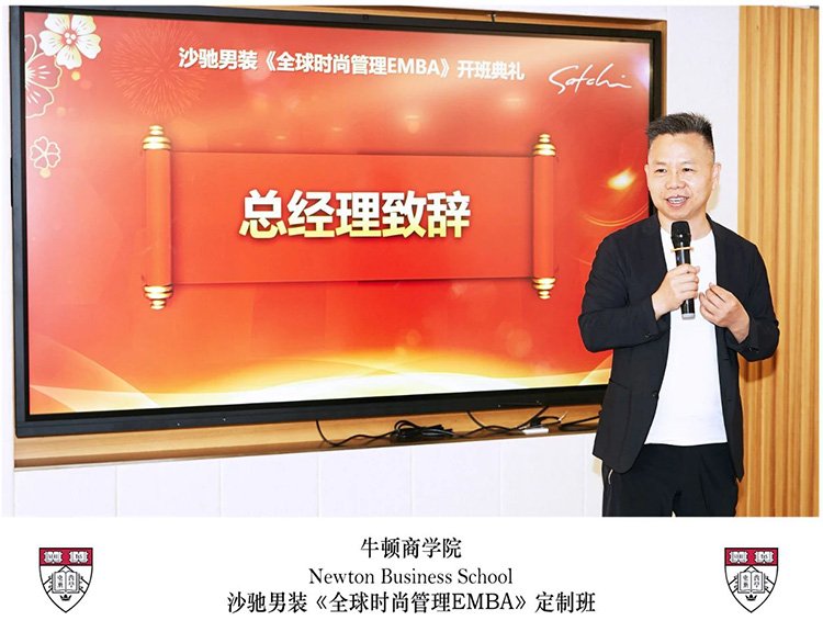 中國上海—2021年5月8日,牛頓商學院為沙馳(中國)男裝定制的《全球時尚管理EMBA》班開課。定制課程嚴格按照牛頓商學院學制,跨度一學年,致力為沙馳企業旗下品牌的國際化和上市打造專業化的高水準管理團隊。
