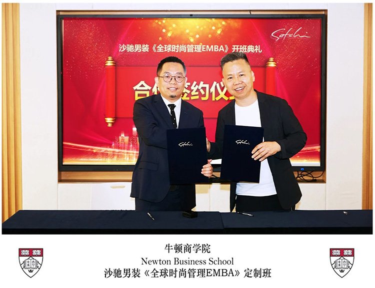 牛頓商學院院長吳波博士,與沙馳(中國)品牌總經理陳珍林先生,在合作協定上簽字。 為沙馳品牌全球化發展和成為國際一線品牌目標,打造一流的管理團隊和國際化專業人才。