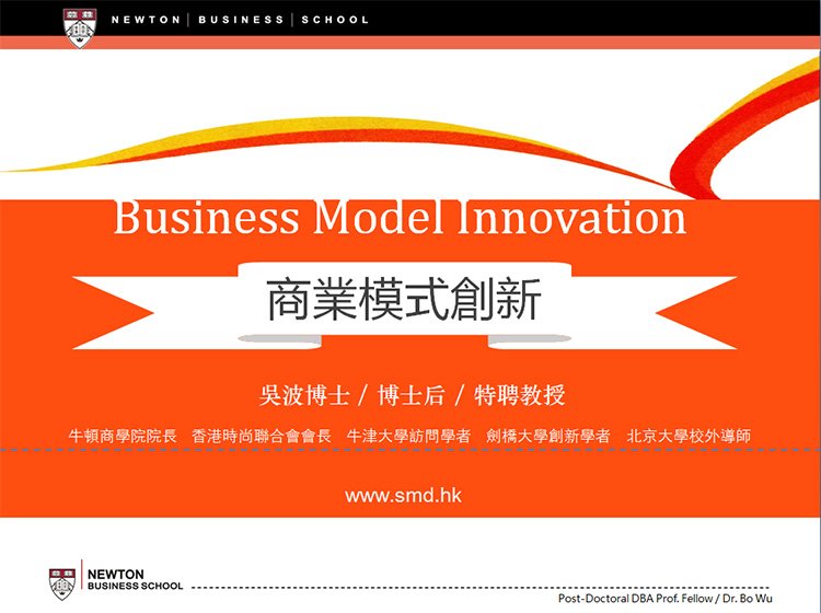院長吳波博士首先為Fashion DBA中英班 / Fashion Master Class中英班的學員講授第一個模組【商業模式創新】,吳波博士在課堂中講到:“你是否躊躇滿志、雄心勃勃?你是否經常思考如何構建新業務並創造價值,或是思考如何改善、變革你的組織?你是否在嘗試著發現創新的方法來取代陳舊過時的經營方式?如果所有這些問題你都回答“是” ,那麼歡迎您加入我們的隊伍!今天的商業模式與創新課程,可以幫助你們來顛覆陳舊的商業模式,同時設計未來的企業。”