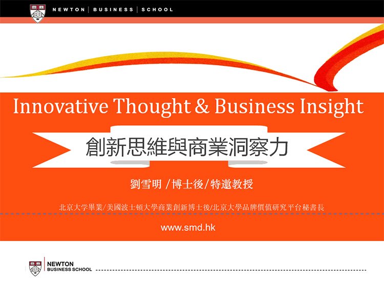 第二天由牛頓國際特邀專家劉雪明博士後講授【創新思維與商業洞察力】模組。劉雪明老師是北京大學經濟學院戰略合作辦副主任、北京大學品牌價值研究平臺秘書長、美國波士頓大學商業創新博士後、英國劍橋大學高級訪問學者。曾旅居海外多年,具有寬闊的國際視野、創新的經營理念和敏銳的市場判斷力,助推多家企業成為行業的翹楚或上市。