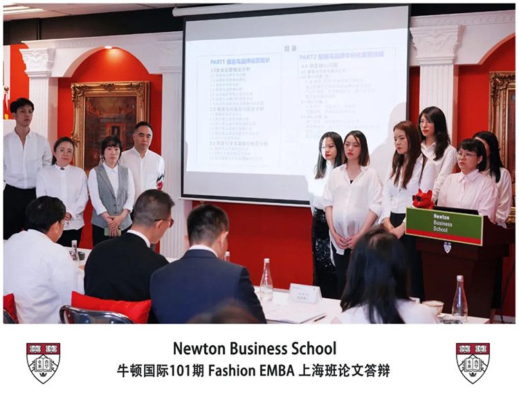 在牛頓上海中心歷經一學年Fashion EMBA的專業學習,通過十二大專業模組和數十位元教授的專業教導,學員們將課堂上學習到的專業知識化為實踐,兩個小組分別完成了一篇6-8萬字高水準的Fashion EMBA專案,在四位Newton Business School專家教授前作最後的答辯。