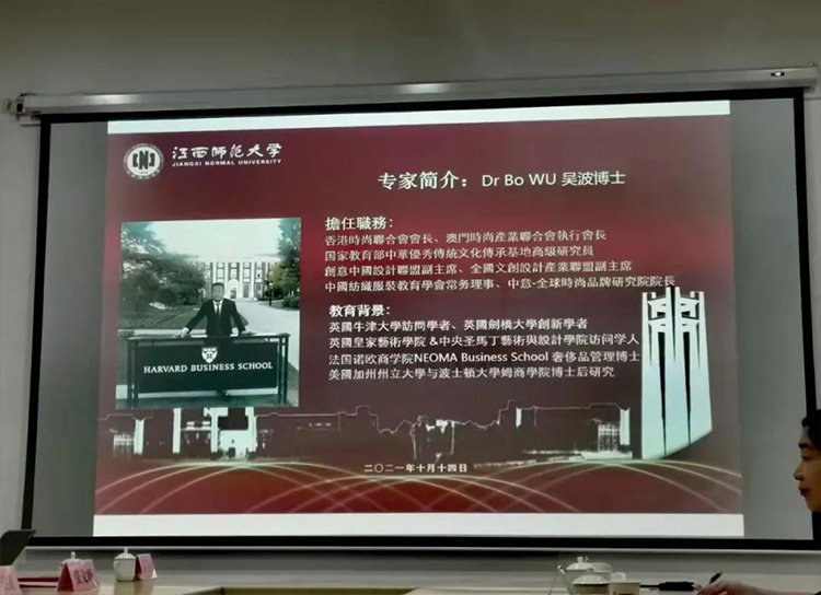 中國南昌—2021年10月14日,由江西師範大學和江西省紡織工業協會聯合主辦;牛頓商學院、江西師範大學美術學院、江西師範大學服裝藝術研究中心共同承辦的2021“服裝產教融合發展高峰論壇”在江西師範大學美術學院舉行。