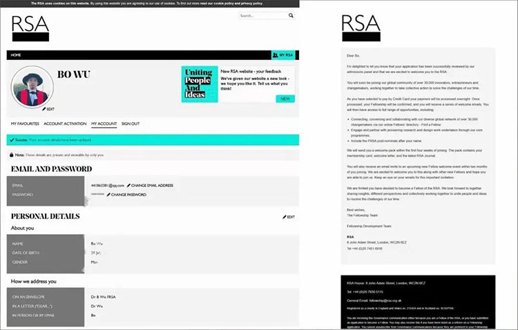 英國皇家藝術學會(The Royal Society of Arts)成為RSA院士的官網截圖