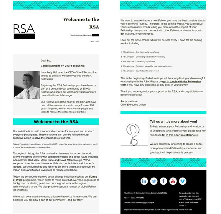 英國皇家藝術學會(The Royal Society of Arts)首席執行官Andy Haldane祝賀吳波博士成為RSA院士的賀信