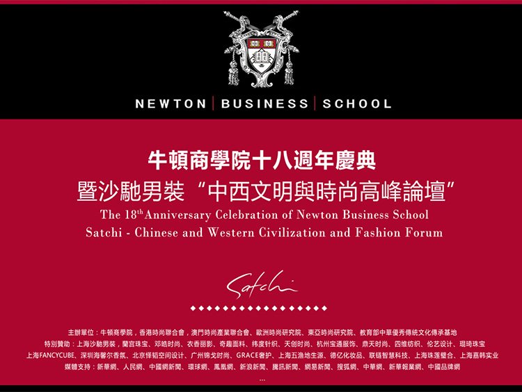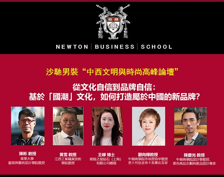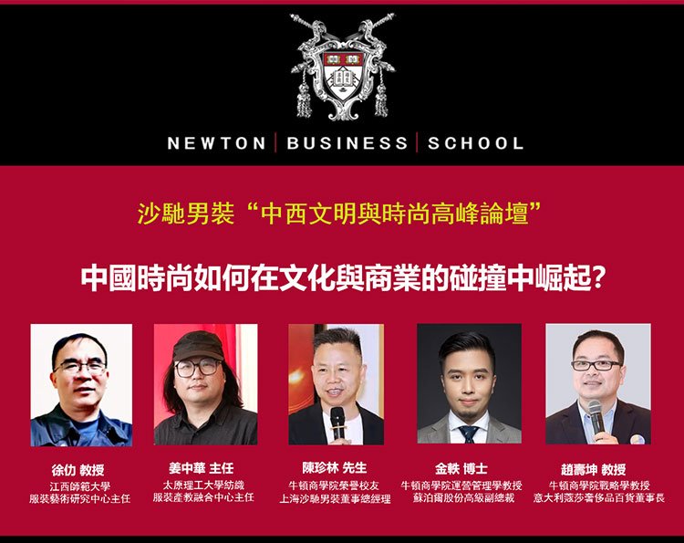 本次論壇由牛頓商學院主辦,香港時尚聯合會、澳門時尚產業聯合會、歐洲時尚研究院、東亞時尚研究院、教育部中華優秀傳統文化傳承基地共同協辦。沙馳男裝特別冠名贊助。
