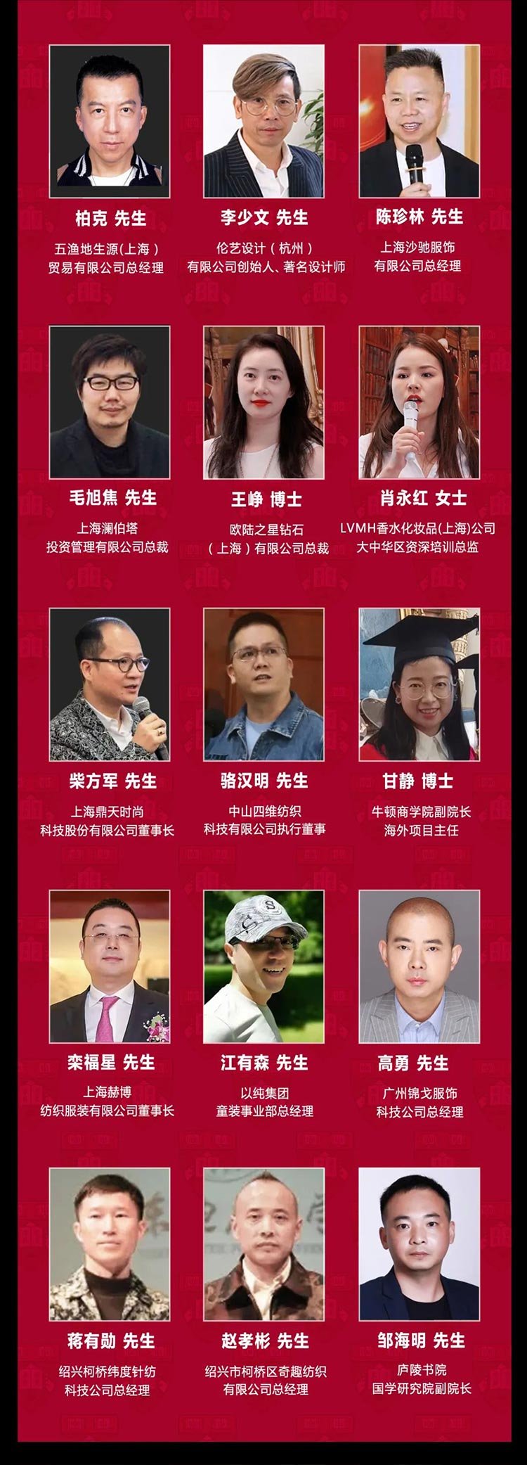 特別感謝以下單位對本次論壇的贊助:上海Satchi沙馳男裝,杭州Y.SING衣香麗影,上海蘭宮珠寶,深圳鄧皓時尚、紹興奇趣面料,紹興緯度針織,廣州棉戈時尚,FANCYCUBE,廣州天創時尚,五漁地生源(上海)貿易,廣州德億化妝品,深圳海馨爾香氛公司,北京懌韜空間設計、杭州寶通服飾,聯鏈智慧科技,上海珠蓮璧合,上海嘉韓實業,琨琦珠寶,上海楓邁企業發展公司。