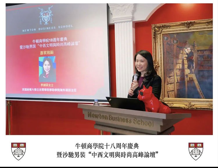 “大家好,我是英國劍橋大學邱吉爾學院穆勒學院的海外項目主任李劍菲,感謝吳院長的邀請參加此次慶典和論壇。我想借此機會祝賀牛頓商學院、祝賀吳院長和所有的老師、學生、以及牛頓商學院的每一個人,祝賀你們迎來了18周年。劍橋大學邱吉爾學院穆勒學院與牛頓商學院從2017年開始合作,已經保持了5年友好的合作關係,希望明年可以在劍橋大學見到各位同學和老師們。再次祝賀牛頓商學院!”