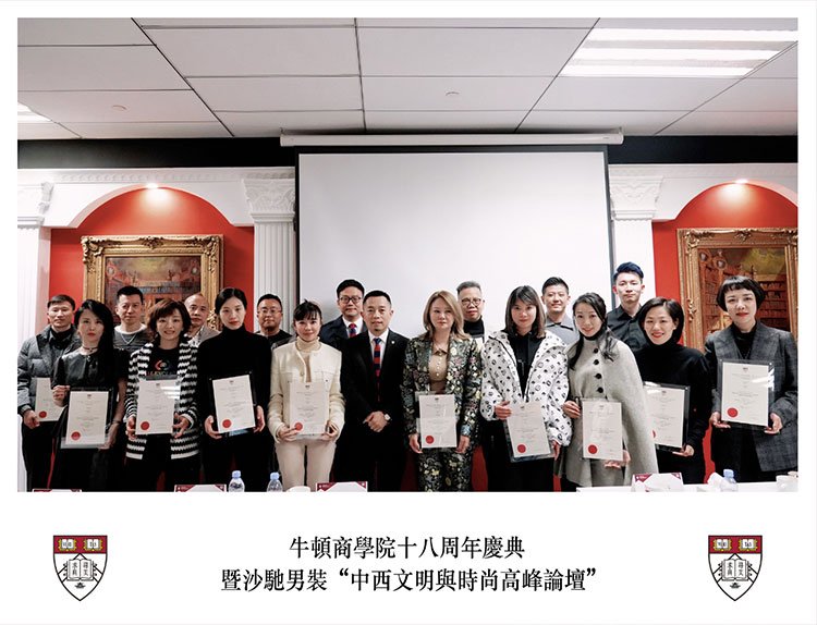 中國上海-2021年12月4日下午,牛頓商學院十八周年慶典暨沙馳男裝“中西文明與時尚高峰論壇”在牛頓商學院上海中心舉行。來自兩岸四地各大高等院校、學術界、時尚產業界、商業界、媒體界以及牛頓商學院校友會等各大代表、各領域學者、行業專家齊聚一堂,共同參與牛頓商學院校慶盛世。