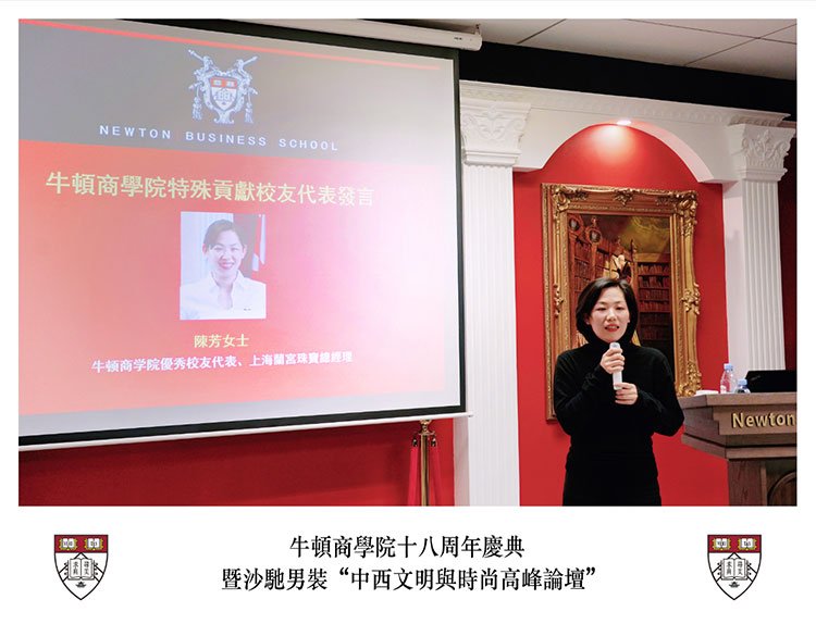 “感謝學院,感謝吳院長給我們的這份榮譽,在時尚的圈子裡,逐見一山又一山的泰斗,唯有發奮,砥礪前行。祝牛頓商學院18周年生日快樂。”