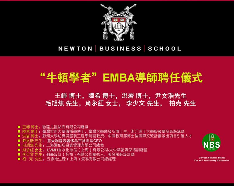 牛頓商學院學術管理委員會經過綜合評選,為以下專家頒發牛頓商學院EMBA導師聘書,他們分別是: