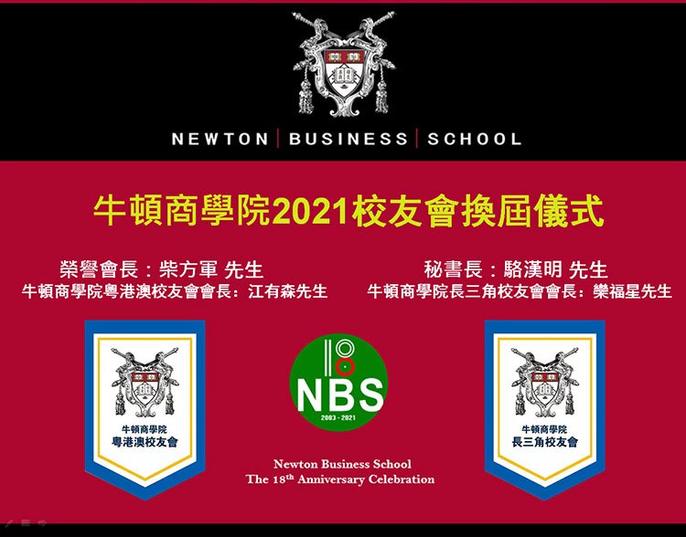 在牛頓商學院18周年的慶典之際,學院進行了新一屆粵港澳校友會、長三角校友會的換屆儀式。