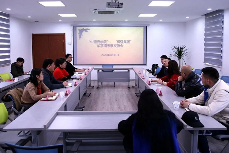 牛頓國際(Newton Business School)與牛頓優秀校友企業楓邁集團來到上海市嘉定區華亭鎮開展實地考察交流。華亭鎮黨委書記何蓉等領導陪同。