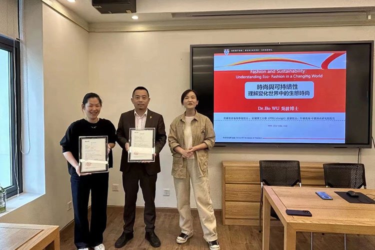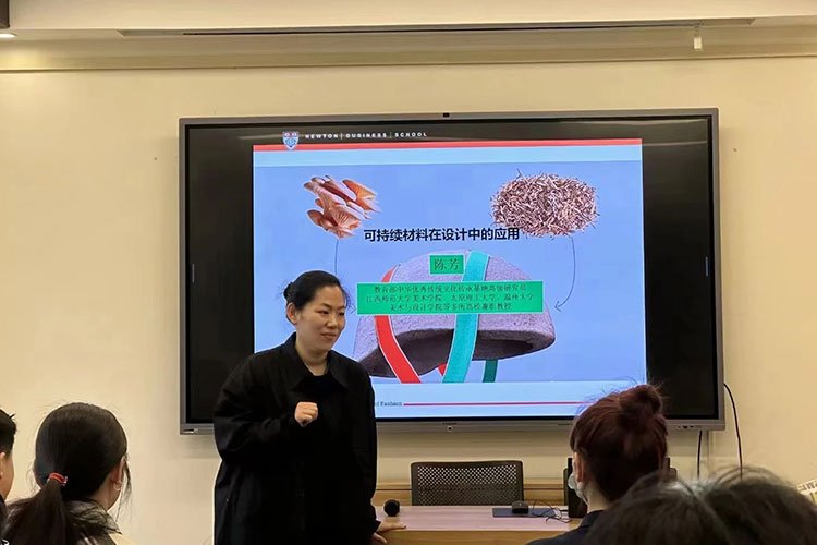 陈芳教授为学生们列举了大量可持续时尚材料在商业中的运用并成功的案例。陈芳教授认为,选择可持续材料不仅仅是减少碳排放和营销,这一环节还在于帮助品牌将积极的社会影响融入其供应链。