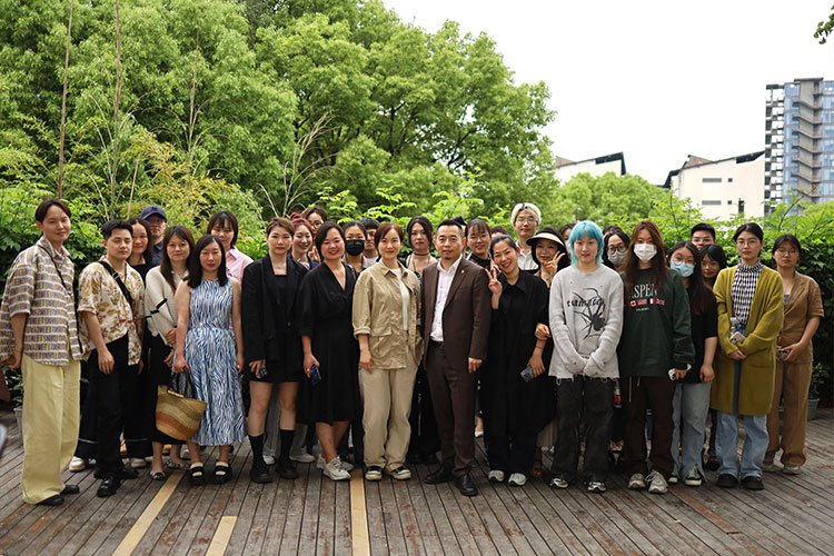 吴波博士、陈芳教授、周潇副教授与中国美术学院的学生以及牛顿高商109期Fashion EMBA上海班的部分学员合影