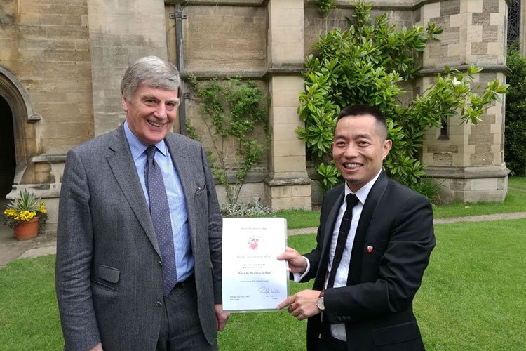 2016年,吳波院長與牛津大學執行校長拉爾夫•沃勒在英國洽談合作,並為牛頓商學院頒發賀函