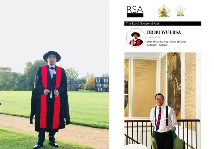 吳波博士是中國時尚藝術界唯一當選的終身院士,以表彰其在中歐時尚藝術、國際教育及學術研究等方面所做的突出貢獻與努力。 英國皇家學會工藝院遵循皇家憲章要求,終身院士將被授予Life FRSA勳銜,入選英國皇家學會工藝院終身院士(RSA Life Fellow)代表了其在藝術、商業和社會科學領域所獲得的最高學術榮譽。