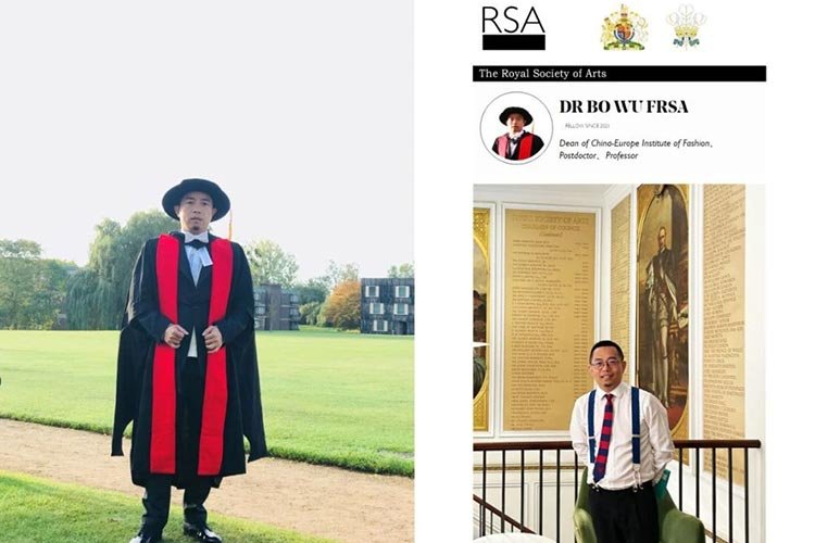吳波博士是中國時尚藝術界唯一當選的終身院士,以表彰其在中歐時尚藝術、國際教育及學術研究等方面所做的突出貢獻與努力。英國皇家學會工藝院遵循皇家憲章要求,終身院士將被授予Life FRSA勳銜,入選英國皇家學會工藝院終身院士(RSA Life Fellow)代表了其在藝術、商業和社會科學領域所獲得的最高學術榮譽。