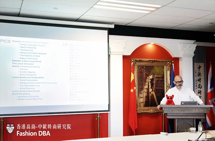 作為香港高等商學院中歐合作辦學10周年的重要活動之一,香港高商一直致力於推動教育國際化,先後與中央聖馬丁、倫敦時裝學院、英國皇家藝術學院、英國劍橋大學丘吉爾學院穆勒學院、法國諾歐商學院等世界名校合作課程,為大中華區時尚界的企業家提供全球化的學習機會。Nick教授的授課,正是這一戰略成果的具體體現。