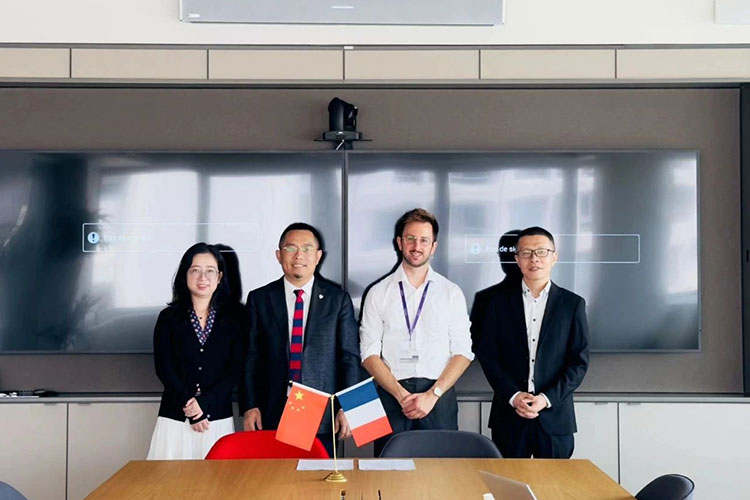 香港高等商學院院長吳波教授與法國諾歐商學院行政副院長 Frédéric Droguet 、法國諾歐商學院孔子學院項目主任 Victor BERNARD 洽談交流