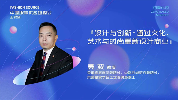 在中歐時尚研究院與Fashion Source舉辦的中國服裝供應鏈峰會上,中歐時尚研究院院長吳波教授以“設計與創新——通過文化、藝術與時尚重新設計商業”為題發表主旨演講,基於全球時尚產業最新趨勢與前沿實踐,系統闡述設計創新驅動商業變革的底層邏輯與實施路徑。吳波教授首先援引Bof x 麥肯錫2023-2025《全球時尚行業報告》,強調設計創新需以文化敘事為錨點,重構品牌與用戶的價值共鳴。