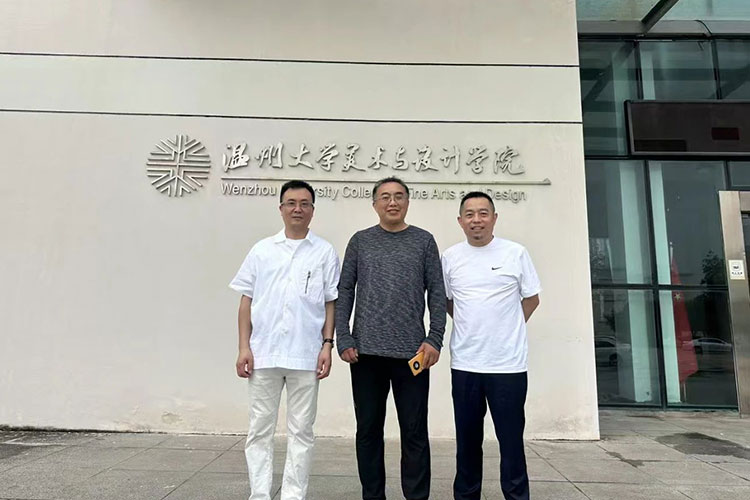 香港高等商學院、中歐時尚研究院院長吳波教授(右)、中歐時尚研究院校友會熊琦副會長(左)與溫州大學美術與設計學院薑岩教授合影