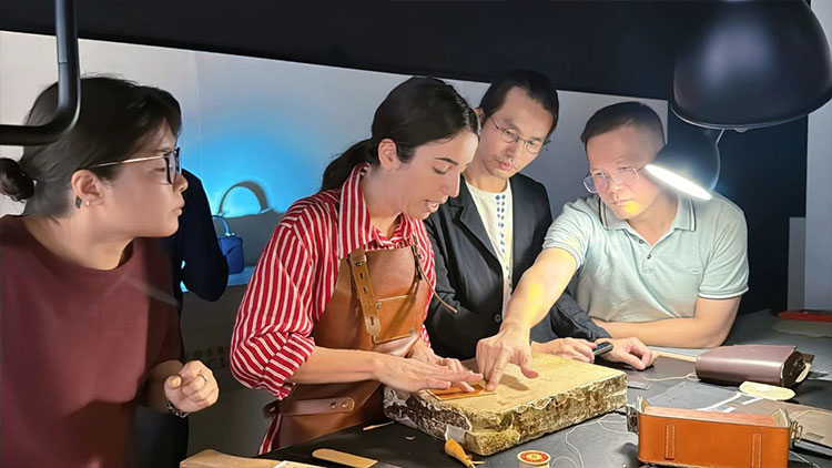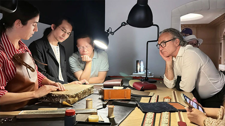 參觀過程中,香港高商117期中法時尚管理DBA班的學員們瞭解到巴黎比肩愛馬仕的頂奢品牌如何將百年傳統手工藝與現代美學設計相結合:工匠甄選具有高級質感和多重感官體驗的皮革,讓每件皮具成為承載法式智性之光的移動藝術品,以充滿生命力的作品與使用者產生情感上的共鳴。